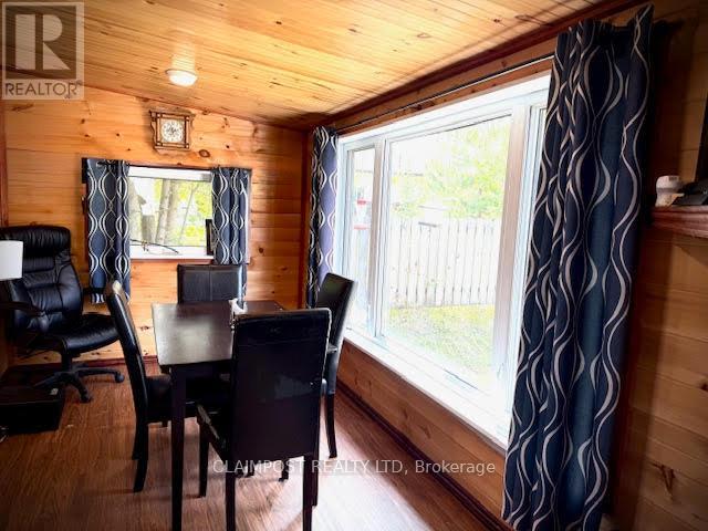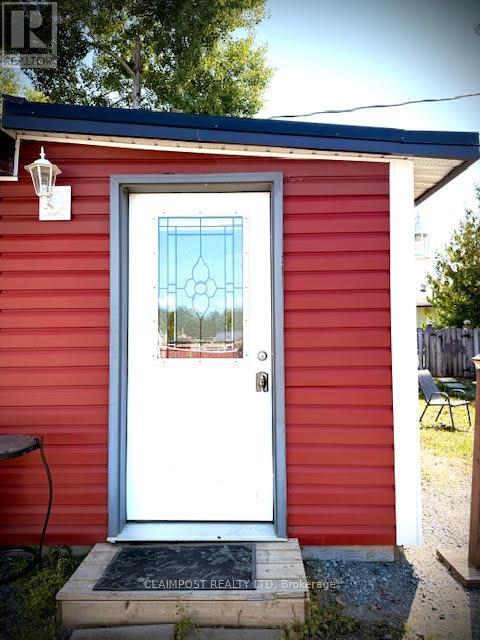 Charming Cabin Vibes, Modern Comforts. Tucked away on a spacious double lot and only a short stroll to beautiful Lake Minisinakwa, this cozy retreat blends rustic charm with everyday convenience. Municipal water, sewer and electricity are already in place, so you can settle in without the fuss. The home is currently a one-bedroom layout, yet the attached garage offers the perfect opportunity to create additional living space and bring the total to approximately 1,142 sq. ft. The generous yard gives you room to design your dream garage, while a large industrial-grade storage shelter provides all the space you need for toys, tools, and treasures. (id:23304)