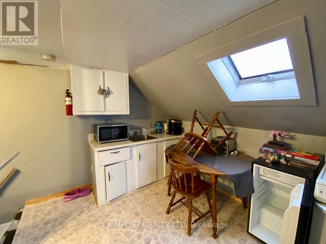 3 bedroom house with one of the bedrooms on the upper floor that has an optional separate entrance, kitchenette along with a sitting area and 3 pc bath. Main floor living room is bright and airy with large windows. Yard has nice tree line for privacy, outdoor fire pit and overlooks the back end of a park, also has large shed for storage. Appliances included. This home is a great starter! (id:23304)
